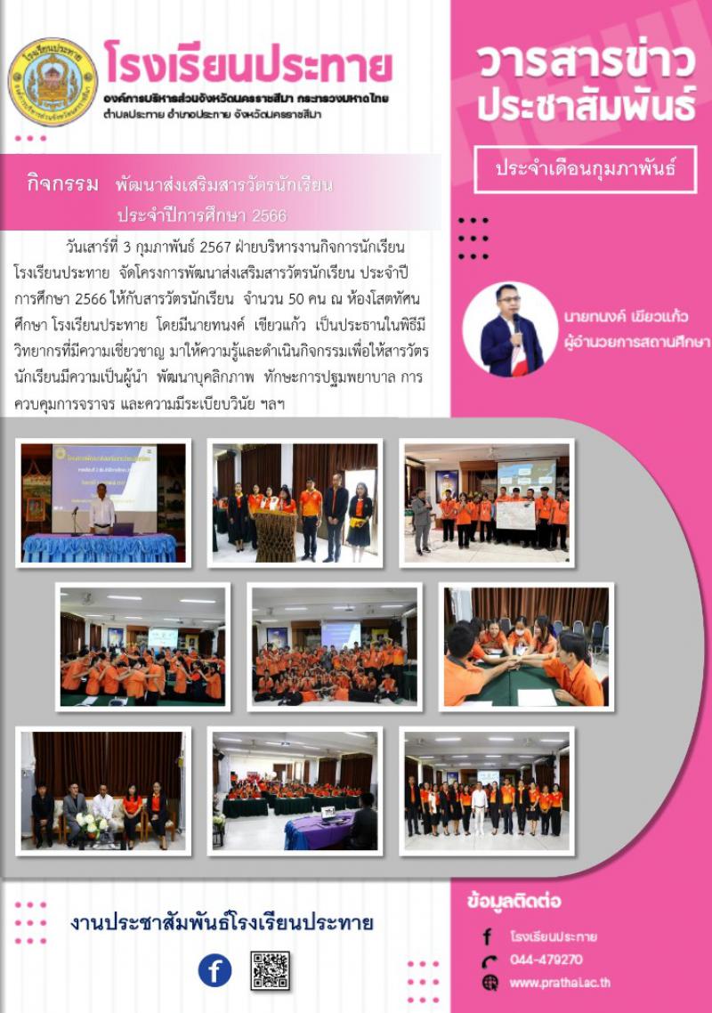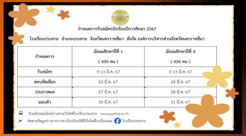 โรงเรียนประทายรับสมัครนักเรียนเข้าศึกษาต่อระดับชั้น ม.1 และ ม.4 ประจำปีการศึกษา 2567