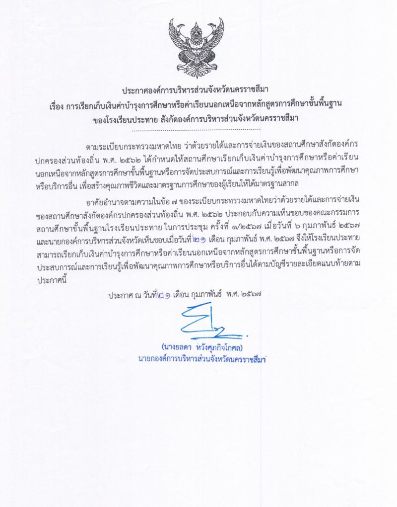 การเรียกเก็บเงินค่าบำรุงการศึกษากหรือค่าเล่าเรียนนอกเหนือจากหลักสูตรการศึกษาขั้นพื้นฐาน