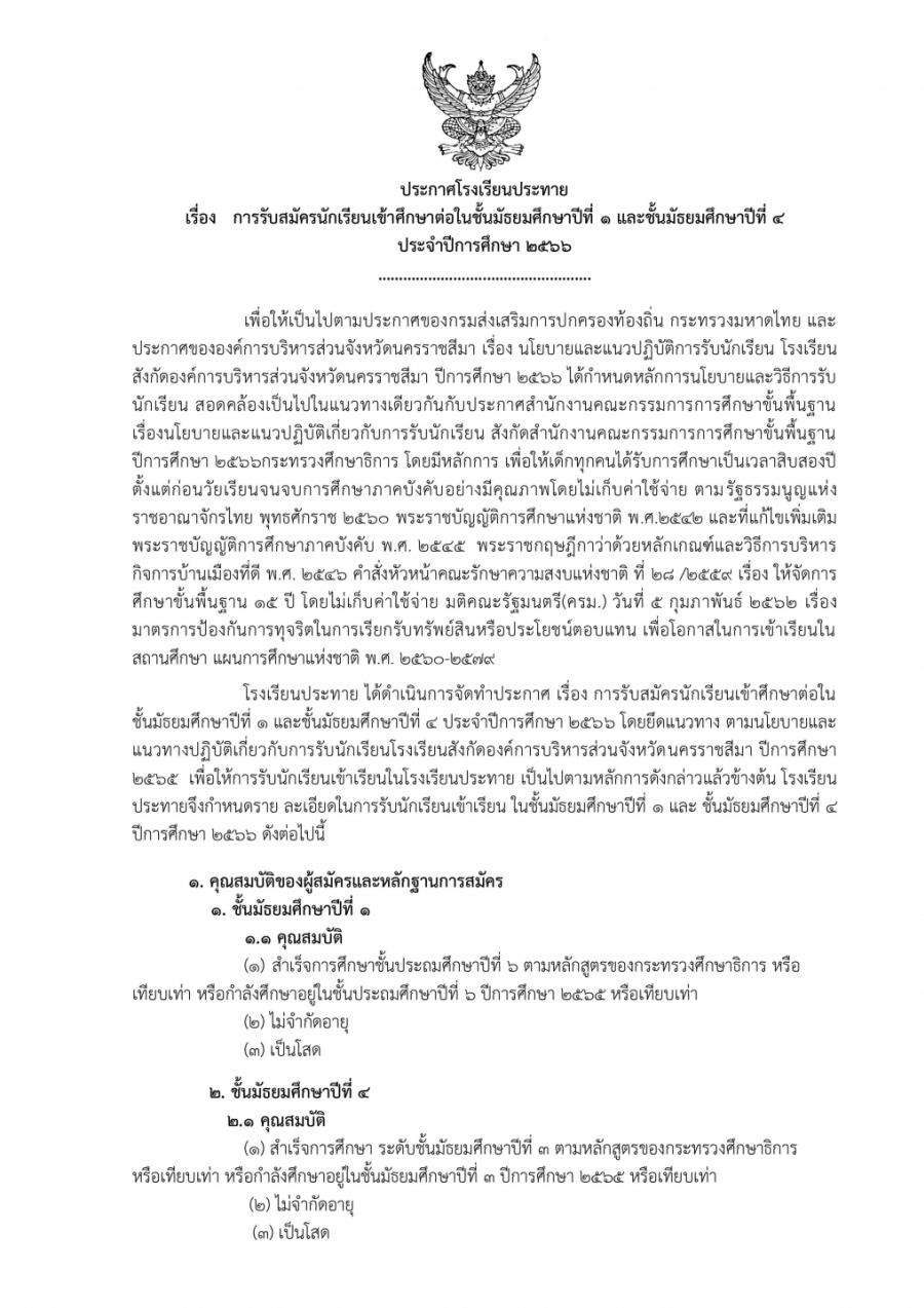 ประกาศรับสมัครสอบเข้า ม.1 และ ม.4 ห้องเรียนทั่วไป ปีการศึกษา 2566