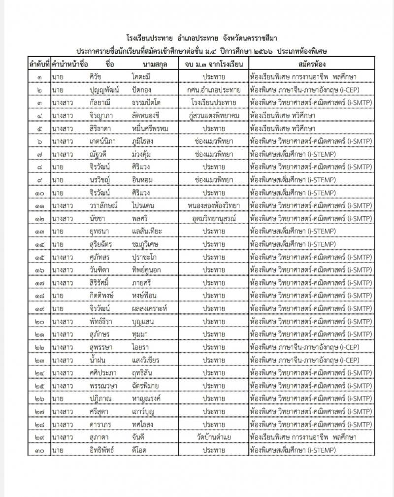 ประกาศรายชื่อผู้มีสิทธิ์สอบห้องเรียนพิเศษ-ม.4/2566