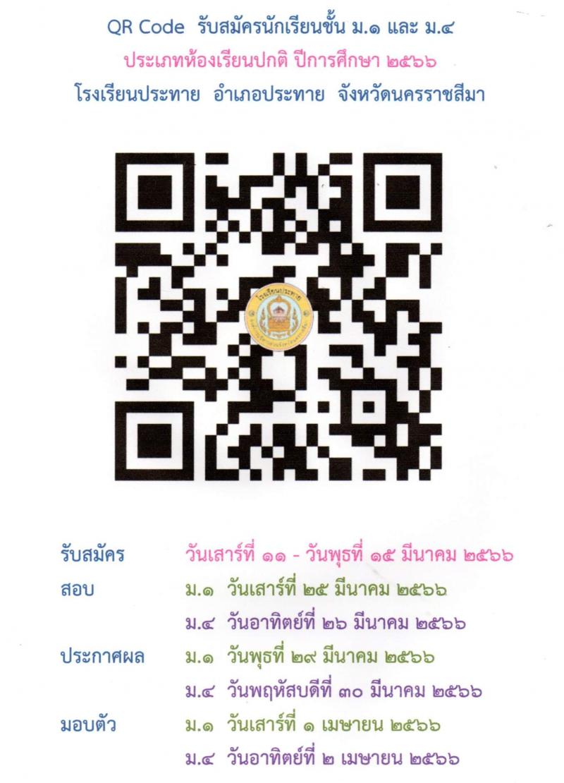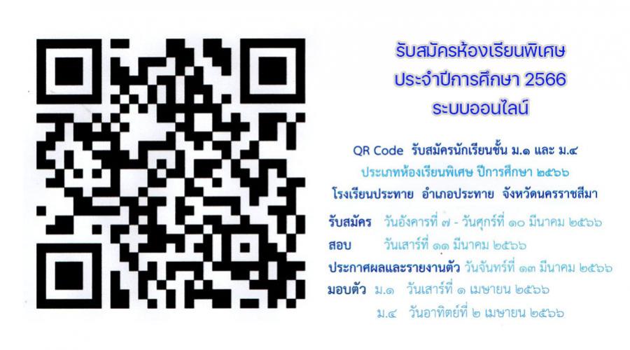 นักเรียนระดับ ป.6 และ ม3 มีความประสงค์เข้าเรียนห้องเรียนพิเศษ สแกน QR-Code สมัครได้เลย