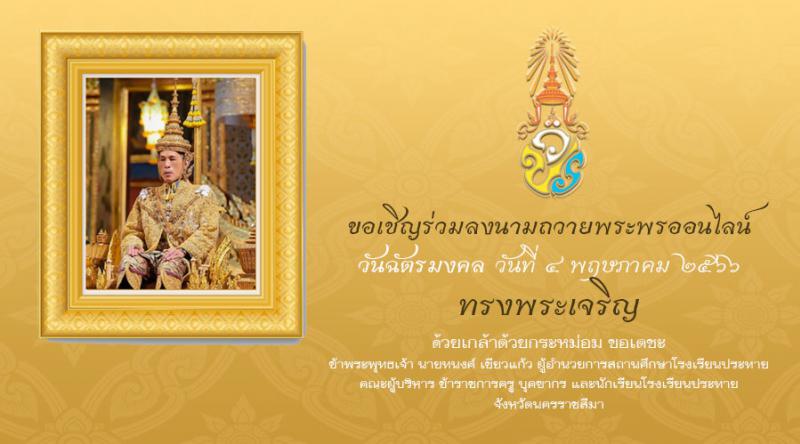 ขอเชิญผู้บริหาร ข้าราชการ ครู บุลากรทางการศึกษา นักเรียน และบุคลทั่วไปร่วมลงนามถวายพระพรชัยมงคลอิเล..