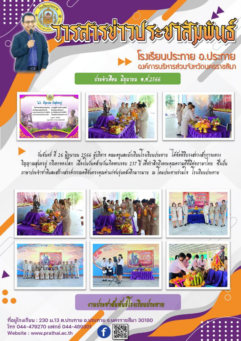 กิจกรรมทำแบบทดสอบภาษาไทยออนไลน์ วันภาษาไทยแห่งชาติ ปี2566 เพื่อรับเกียรติบัตร