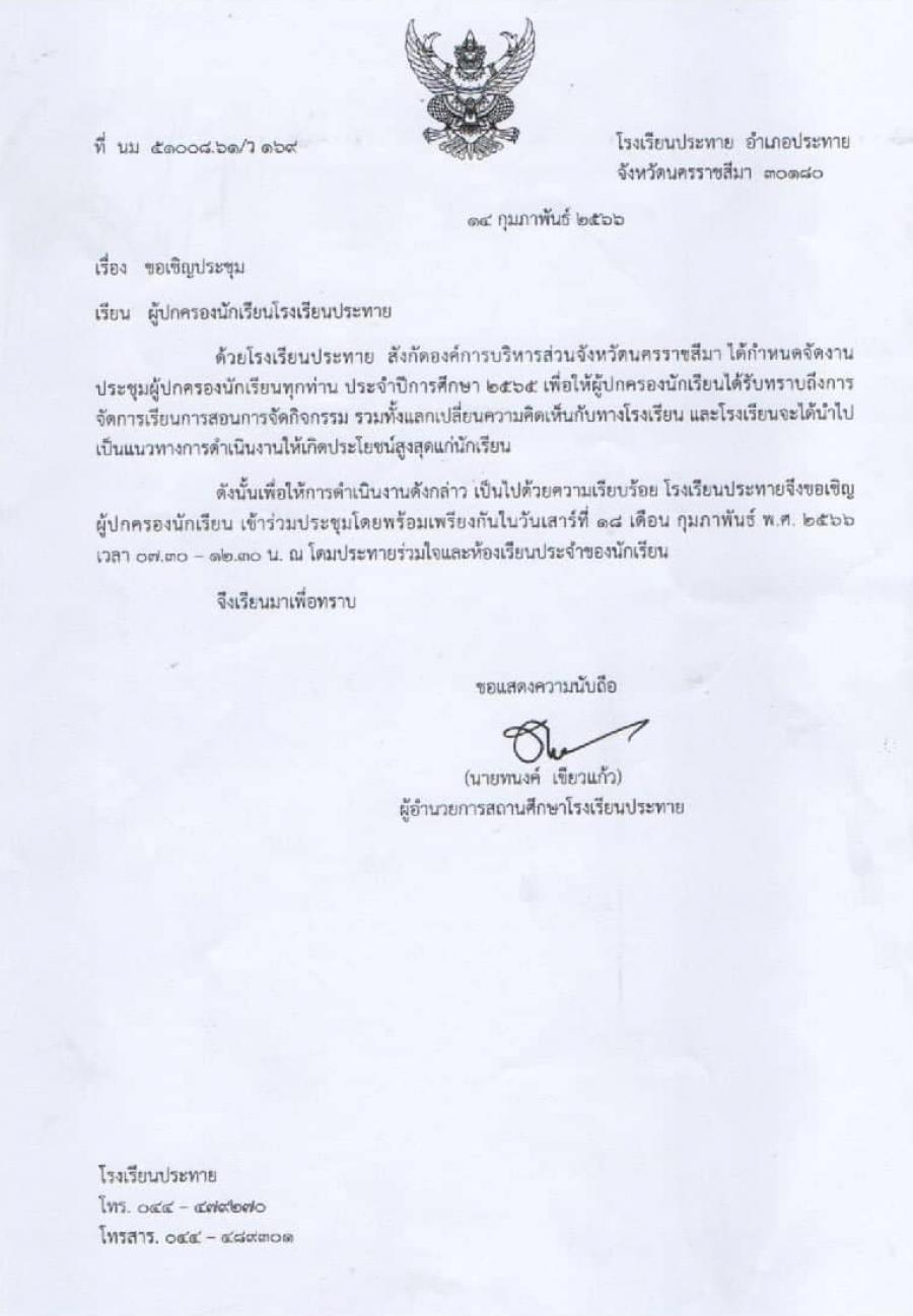 โรงเรียนประทายจัดการประชุมประจำเดือนพฤศจิกายน 2565 เพื่อรับทราบข้อมูลและเตรียมความพร้อมในการเปิดภาคเ..